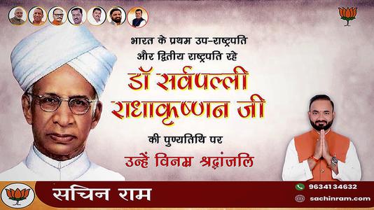सचिन राम -भारत के प्रथम उप-राष्ट्रपति और द्वितीय राष्ट्रपति रहे डॉ सर्वपल्ली राधाकृष्णन जी की पुण्यतिथि पर विनम्र श्रद्धांजलि