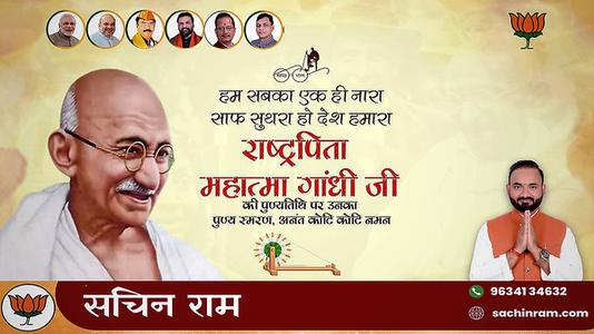 सचिन राम -स्वतंत्रता संग्राम के अमर दीप राष्ट्रपिता महात्मा गांधी जी की पुण्यतिथि पर सादर नमन एवं विनम्र श्रद्धांजलि