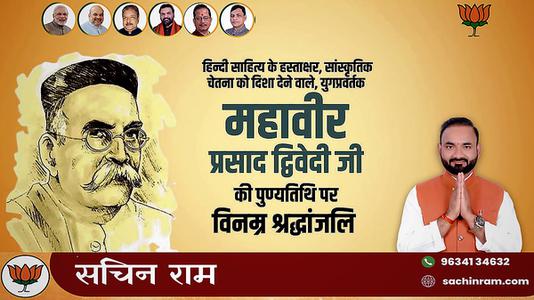 सचिन राम -महावीर प्रसाद द्विवेदी जी की पुण्यतिथि पर विनम्र श्रद्धांजलि