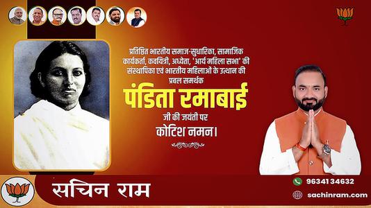 सचिन राम -पंडिता रामाबाई   की जयंती पर शत शत नमन