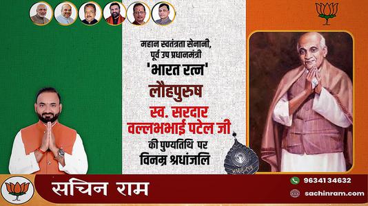 सचिन राम -सरदार बल्लभभाई पटेल जी की पुण्यतिथि पर विनम्र श्रद्धांजलि