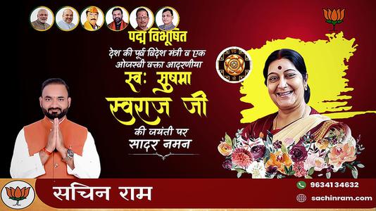 सचिन राम -सुषमा स्वराज जी की जयंती पर शत शत नमन